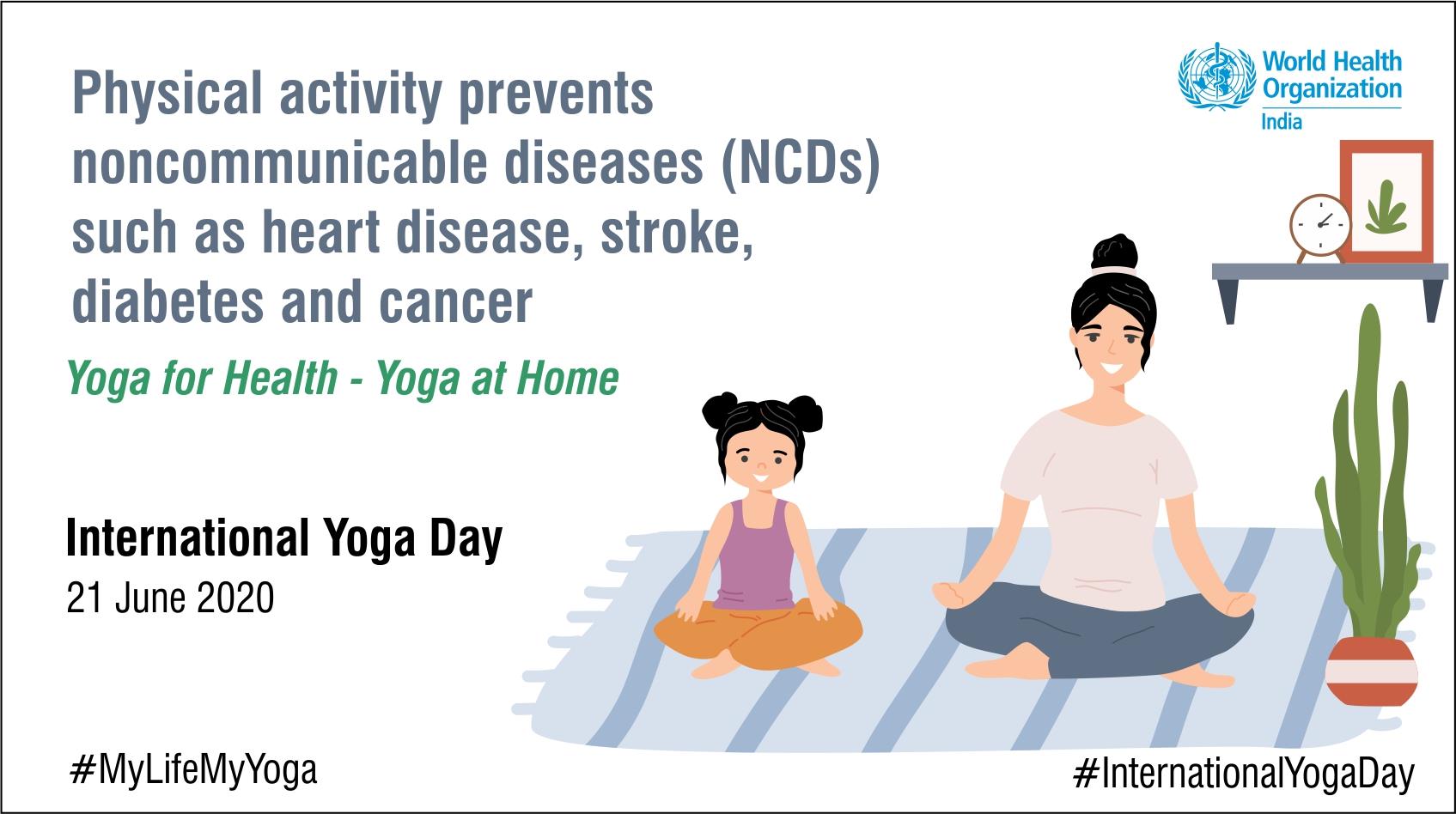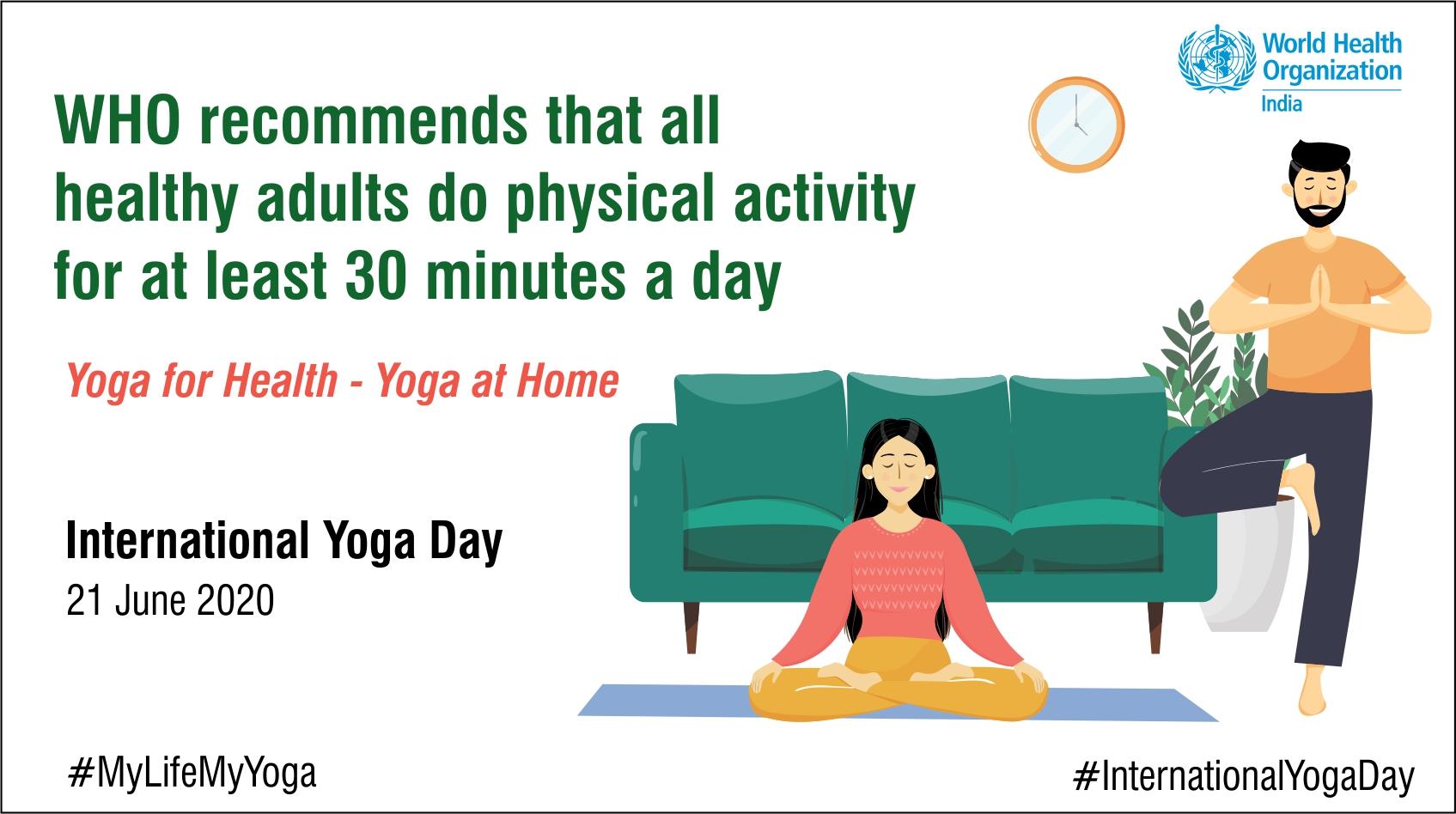 United Nations celebrate International Yoga Day every year on 21st June since 2015. The resolution for International Day of Yoga was proposed by India and endorsed by a record 175 member states through UN resolution 69/131. This year the theme of International Yoga Day (IDY) is ‘Yoga for Health - Yoga at Home’. The Global Action Plan on Physical Activity 2018–2030 which is endorsed by the Member States mentions yoga as a means to improve health.