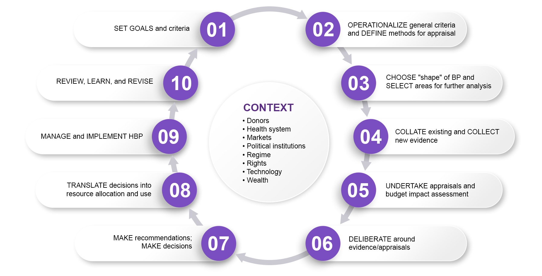 Once benefit packages are developed, they must be continuously revised and updated to reflect changes that may be required over time, including those related to changing epidemiological situations, availability of resources, service delivery modalities, etc. Making explicit choices on the path to UHC: The JLN health benefits package revision guide, a guide developed by the Joint Learning Network for Universal Health Coverage (JLN), provides guidance to low and middle-income countries (LMICs) on the process of revising benefits packages, based on learning from 18 countries (Baltussen, Bijmakers et al, 2022). This Guide summarizes the experiences of the 18 studied countries; identifies five key principles to consider in HBP revision; proposes steps for organizing the benefits package revision process; assists countries to determine the appropriate analytical approach for the revision; provides guidance on identifying the appropriate data and evidence to use; and presents practical recommendations for engaging in policy dialogue with Ministries of finance and financial authorities.